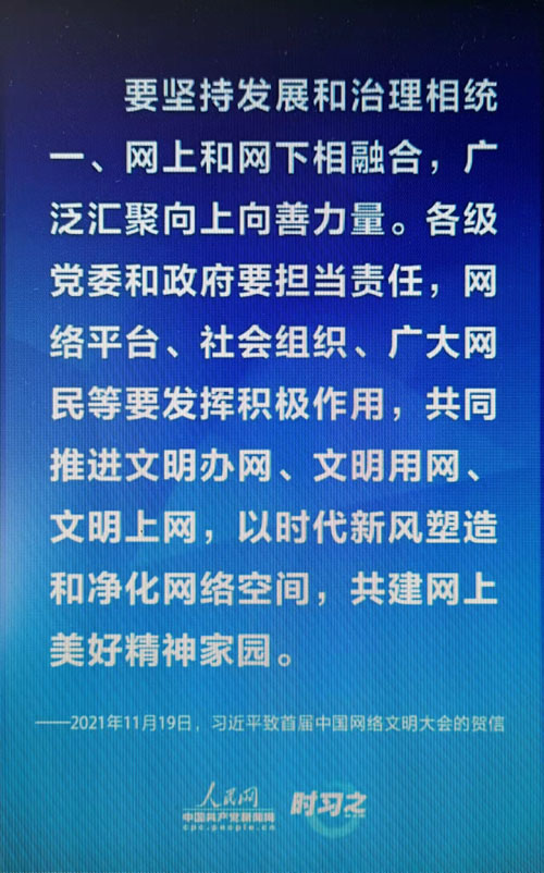 11月19日上午,首屆中國網(wǎng)絡文明大會在京開幕,中共中央總書記、國家主席、中央軍委主席習近平致信祝賀。網(wǎng)絡文明是新形勢下社會文明的重要內容,是建設網(wǎng)絡強國的重要領域。習近平總書記高度重視網(wǎng)絡生態(tài)治理,強調要培育積極健康、向上向善的網(wǎng)絡文化。
