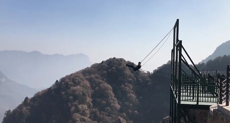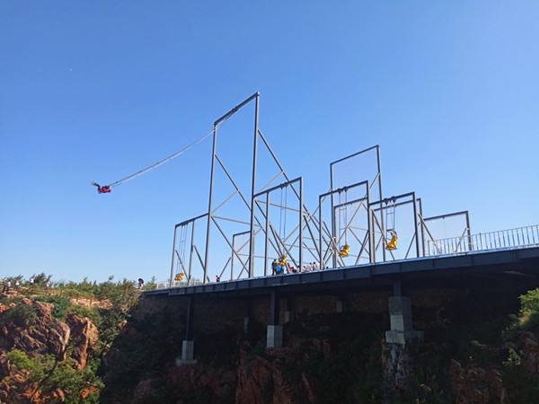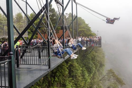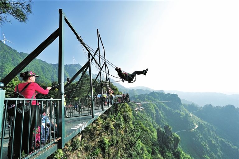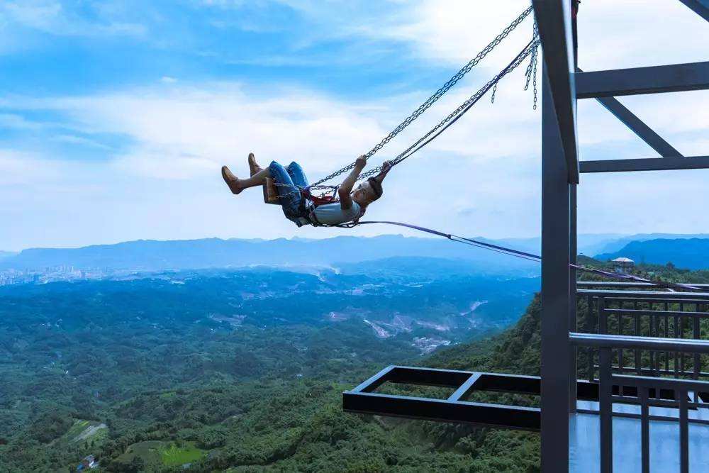 懸崖秋千是一種懸崖邊的極限刺激運(yùn)動。秋千的座椅,被電吸鐵拉到懸崖內(nèi)側(cè)于15米-25米高的地方,吸鐵忽然松開,長長的秋千瞬間向懸崖外蕩去,帶給人以刺激感覺。